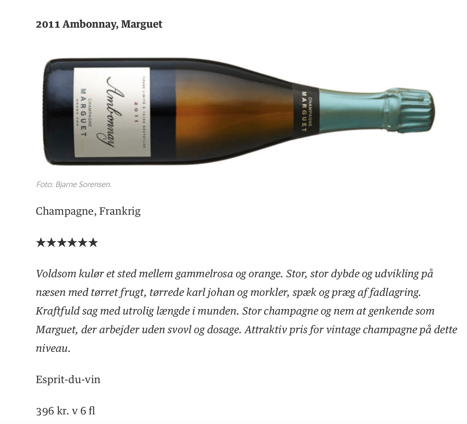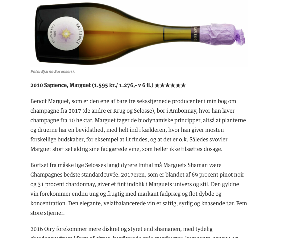 Champagne Marguet ligger i byen Ambonnay i Montagne de Reims og Benoit Marguet er nu 5. generation i familieforetagendet, der blandt andet udmærker sig ved kun at være en ud af tre producenter, der opnår 6 stjerner ud af 6 mulige i Søren Franks bog "Champagne" fra 2017. Et trekløver som udover Marguet består af Krug og Jacques Selosse.